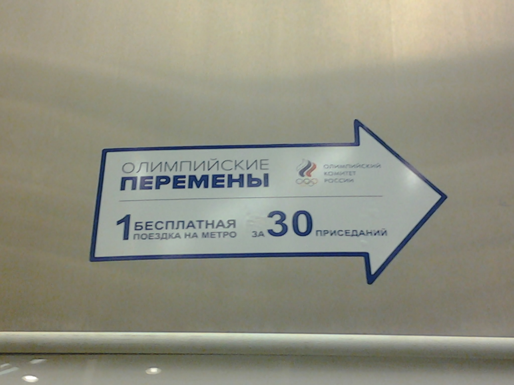 E’ un’idea degli organizzatori delle Olimpiadi di Sochi quella di mettere una macchinetta speciale, a Vystavochnaja, appena sotto il grattacielo Naberezhnaja Bashnja, che distribuisce biglietti della metro con il logo in cambio di trenta flessioni. Un’idea che, tra l’altro, pubblicizza le Olimpiadi come portatrici di alti valori morali e che tradisce la manie imperialiste a cui mi fanno un po’ pensare gli attentati di Volgograd (anche se, ve lo devo dire a voi kamikaze… volete l’indipendenza e per me ve la potreste pure prendere, ma il senso di farvi saltare in una stazione o su un autobus francamente, e di privare voi stessi ed altri del tempo di lottare per le cause giuste…)