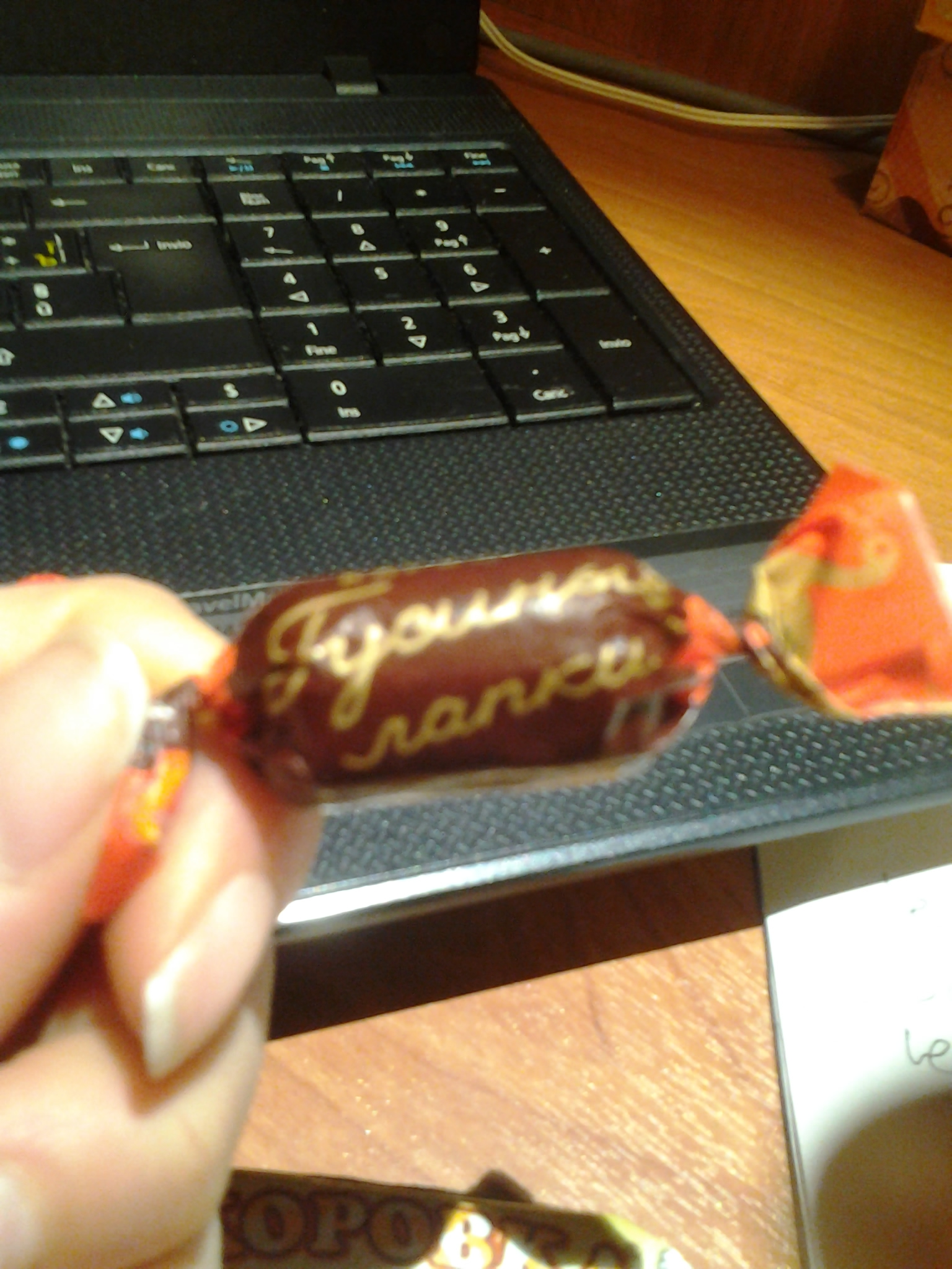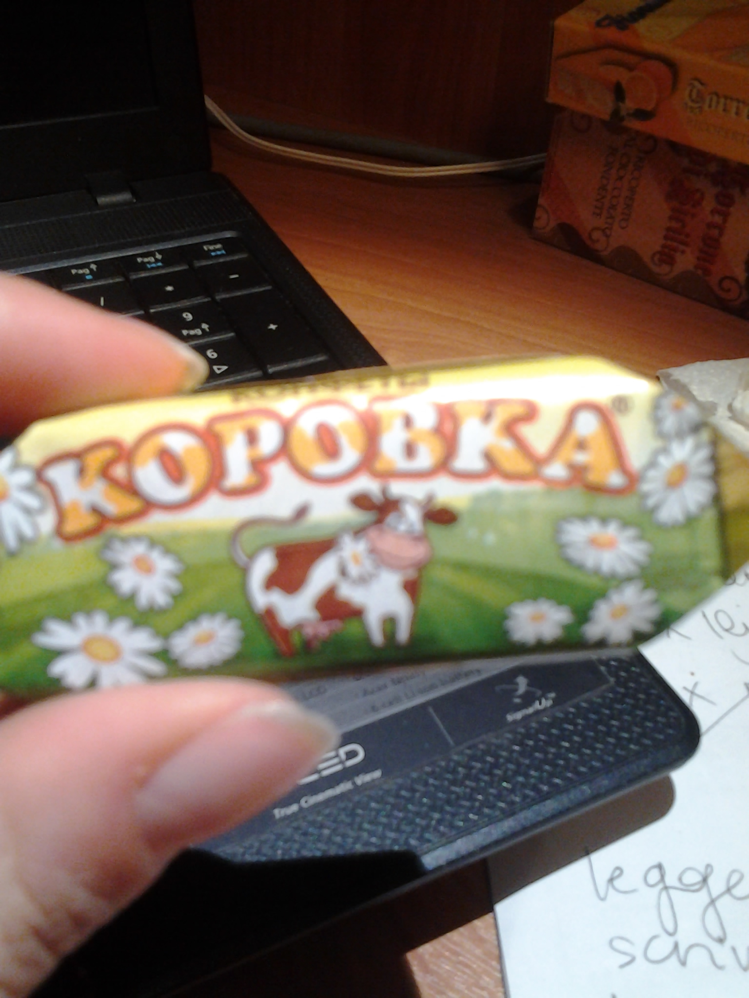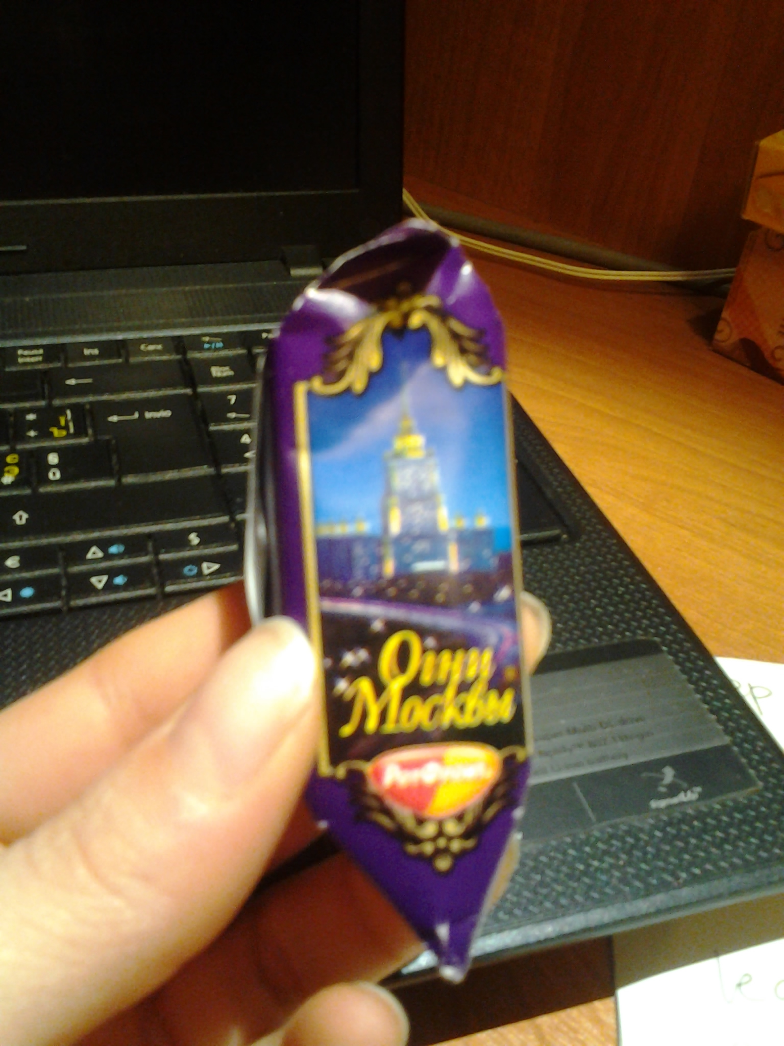 Avevo detto che dentro c’era del cioccolato che, secondo una mia amica che aveva visto la foto del cofanetto aperto, erano le Rossana russe. In realtà, come avevo previsto, non erano Rossana, ma cioccolatini Babaevskij, prodotti dalle operaie che vedo dalla mia finestra e che molto probabilmente incontro sulla marshrutka che da casa mia porta alla metropolitana. Purtroppo per i curiosi, il cioccolatino Babaevskij l’ho divorato prima di tutti e prima di pensare di scrivere di caramelle russe, perciò non ho una foto di quel cioccolatino lì, ma posso solo offrire un’immagine di una barretta con il logo rubata da Google images.