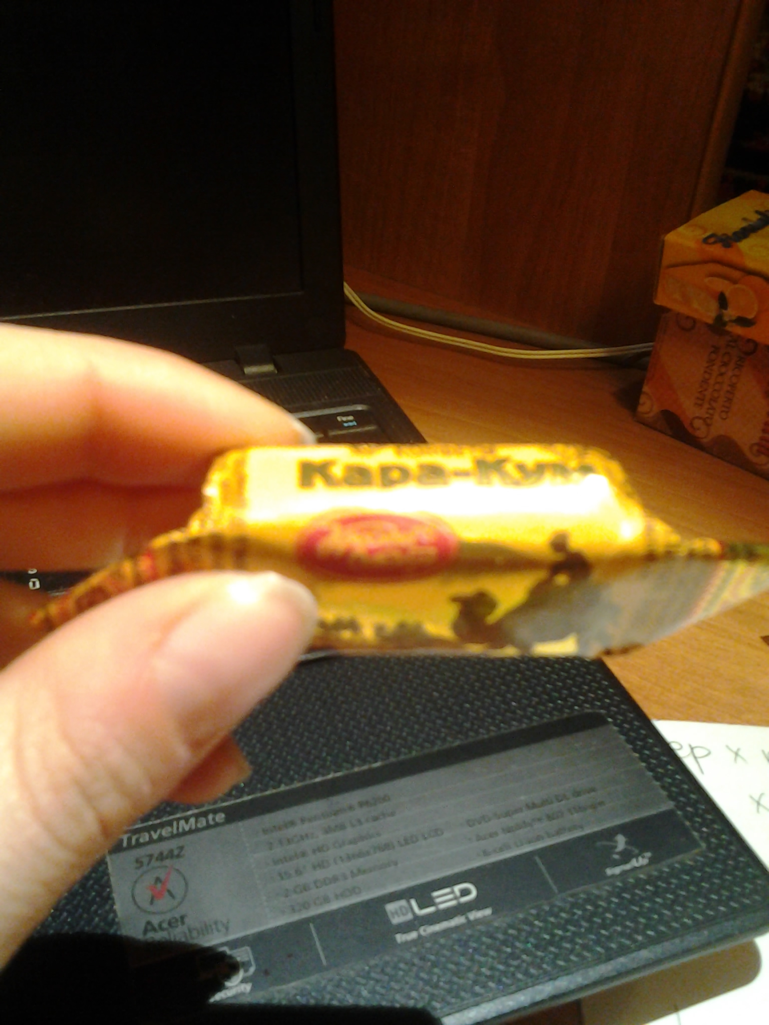 Le ultime tre che vedete sono konfety del marchio Krasnyj Ortjabr’. La cosa interessante è che non ho ancora ben capito in che cosa si distinguano nel gusto; sono tutte cioccolatini, ma sulla confezione non ci sono scritte le caratteristiche, solo il nome del prodotto con un’immagine didascalica. Il cavaliere misterioso mi garantisce che “Papavero Rosso” non è un cioccolatino con dentro i semi di papavero, per esempio. E non è che la mia pensata sia del tutto illogica, visto che in Russia si fanno dolci, addirittura brioche con il ripieno di semi di papavero, che a me disgusta. Mi viene l’idea che forse il nome dei cioccolatini e l’immagine sulla confezione abbia solo a che fare con la presentazione del prodotto: il cavaliere misterioso mi racconta, per esempio, che da bambini giocavano a dare colpi sulle carte delle caramelle; quelle che non si ribaltavano venivano date in pegno al compagno, e il vincitore era quello che conquistava più carte di caramelle. Mi sembra che il gusto del gioco dovesse essere nel fatto che le carte delle caramelle erano belle da guardare, come le figurine dei calciatori, per esempio. Così la caramella diventava non solo un dolciume, ma un pretesto per possedere un oggetto che fosse bello e colorato. Su “Papavero Rosso” un’immagine di papaveri, su “Orso Bruno” degli orsi, su “Kara-Kum” dei cammelli su sfondo dorato e così via.