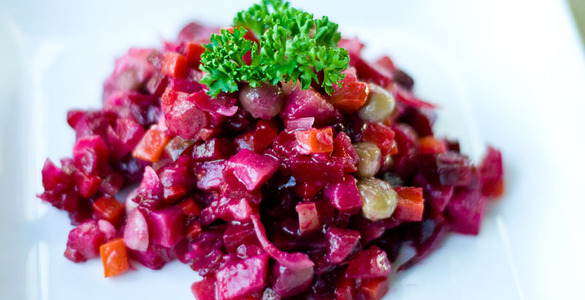 Ai russi l’insalata piace tagliata melko, cioè a piccoli pezzettini. Pensate all’olivier, insalata inventata da un cuoco francese alla corte di Pietro I, che noi chiamiamo “insalata russa”: piselli, “prosciutto cotto”, patate, carote, uova, cipolla, cetrioli sottaceto, mela, pepe, maionese; tutto piccolo e compatto.