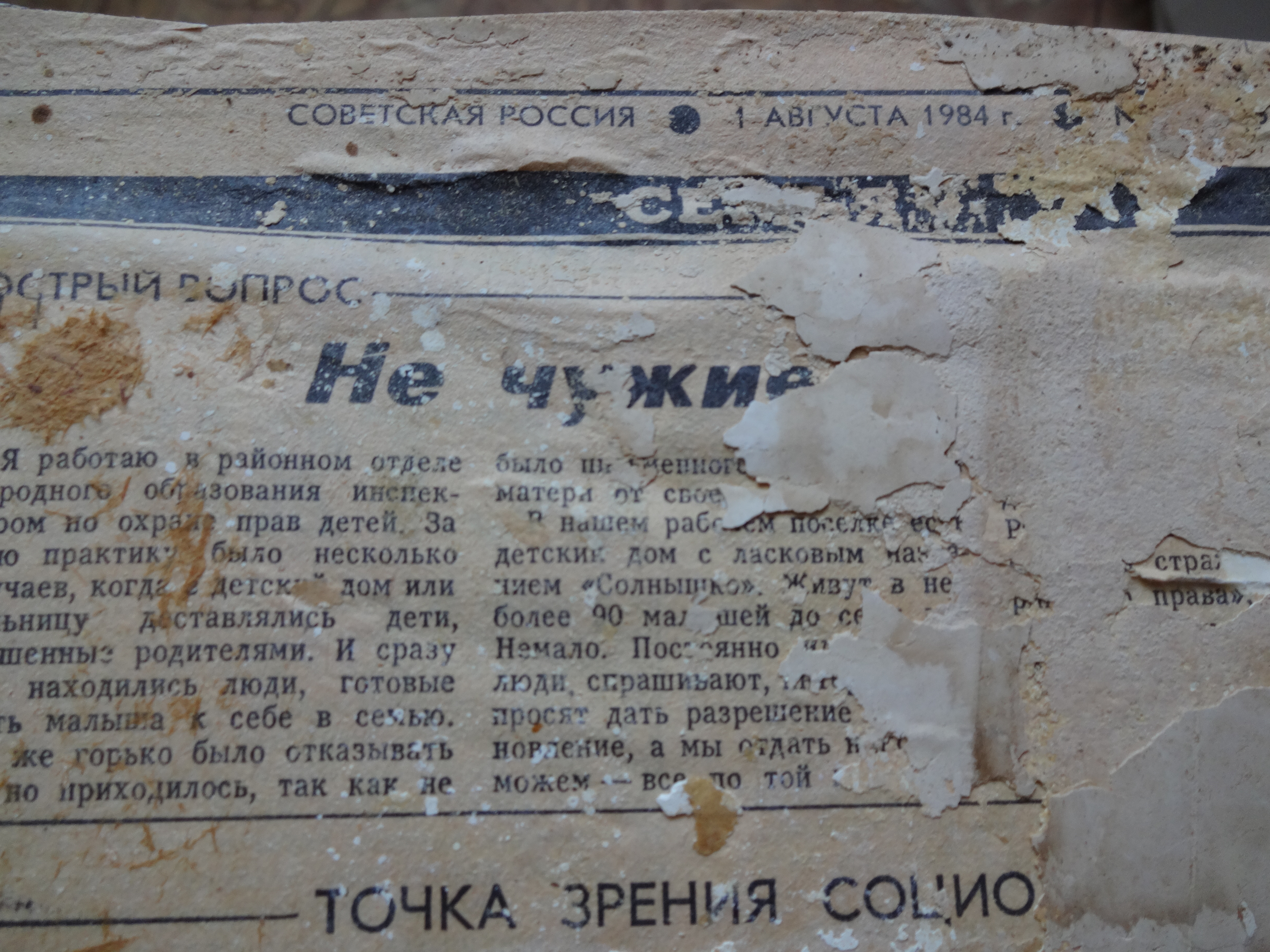 Il mio compito, qualche settimana fa, era grattare via la carta da parati. Cinquantamila strati ricoperti, negli ultimi dieci anni, con un inguardabile strato di fiorellini color crema con il glitter: ma in fondo, sul cemento, al posto dell’intonaco, c’era la carta di giornale; mi sono fatta una cultura, ed anche se non era davvero il quarto strato, ma forse il decimo, ecco cosa succedeva al “quarto strato” russo esattamente 30 anni e 2 giorni fa. Tra le tante pagine difficili da scollare, una con una grande foto di famiglia.