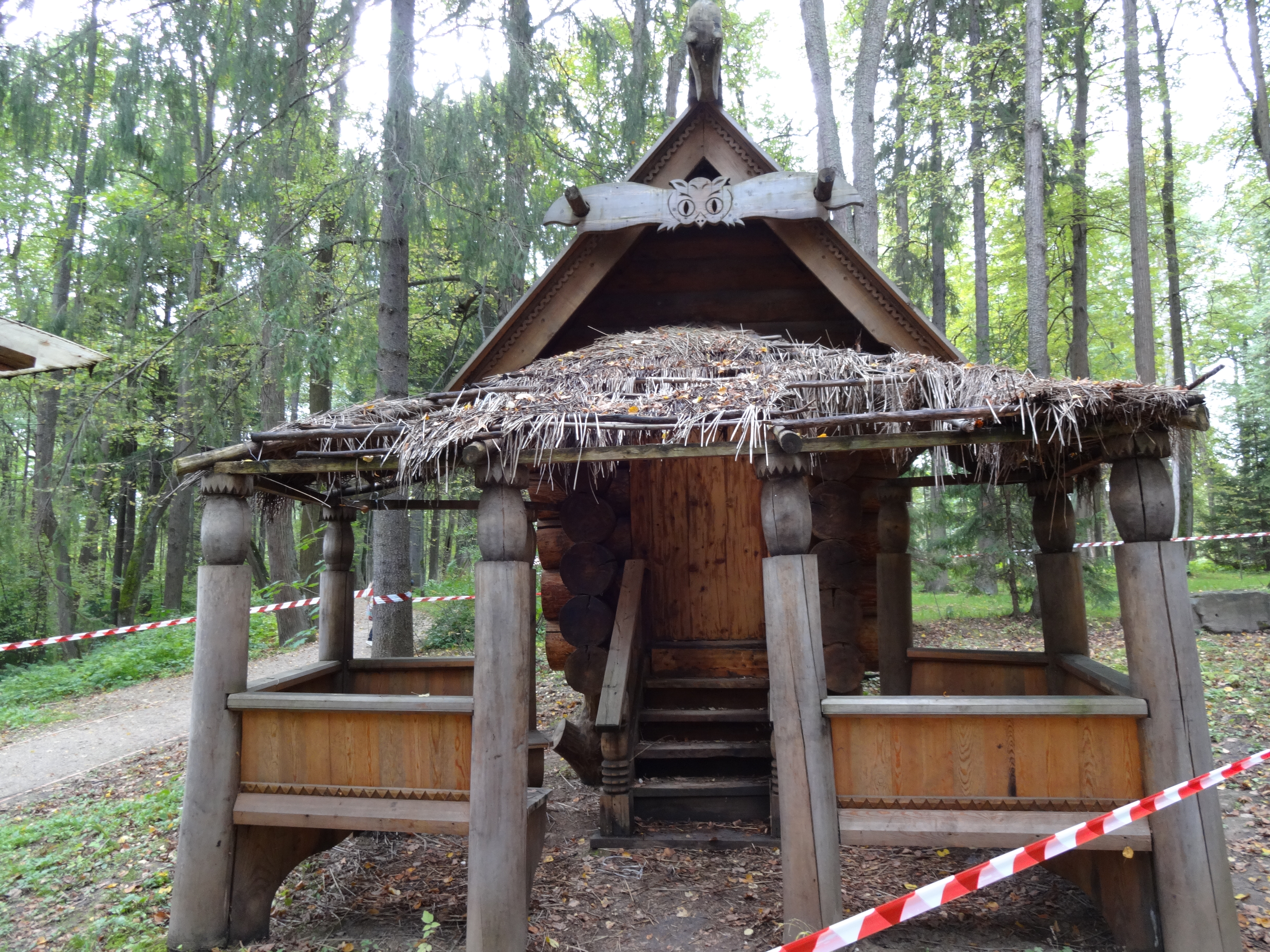 Nella tenuta di Ambramtsevo è possibile vedere anche l’izba su zampe di gallina, la casa del personaggio delle fiabe Baba-jaga, realizzata sul progetto di Vasnetsov.