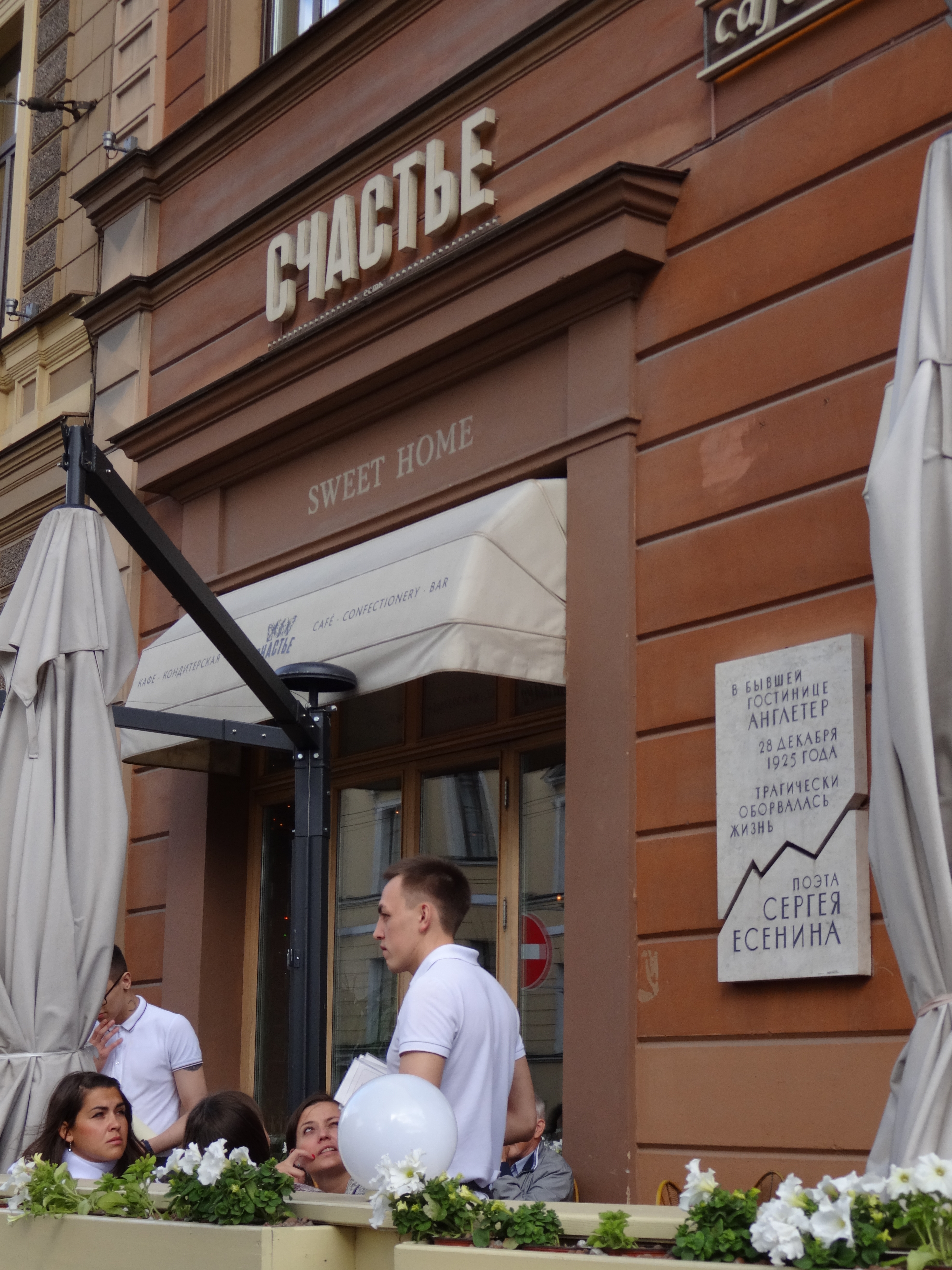Rimaniamo colpiti dalla quantità di servizi di “moglie a ore”, “ragazze” o Dashe, Mashe e Natashe con cuoricino dipinti sull’asfalto e affissi abusivamente ai muri. Non mi ricordavo ce ne fossero tante, di donne a ore, a Pietroburgo, e mi domando, avvilita, da dove provenga tutta questa richiesta. A Mosca sembra essercene molta di meno, e va molto più di moda il “marito a ore” che, si dice, ripari rubinetti, registri ante di armadi, e poi, se hai bisogno, chi lo sa…