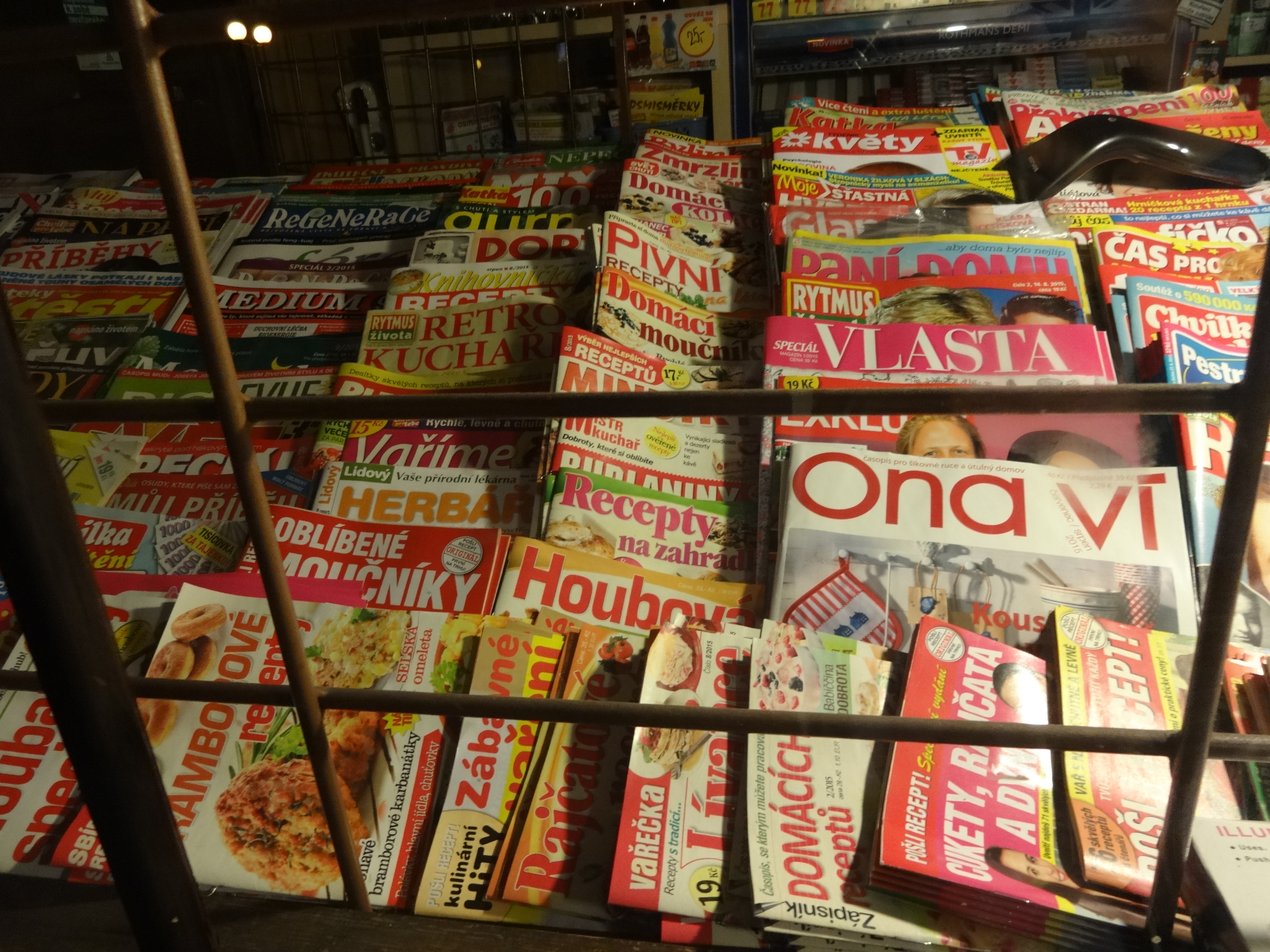 Ci siamo infilati dentro a fotografare i prodotti cechi come i cretini. Io a leggere le etichette e le liste degli ingredienti con una pronuncia sicuramente vergognosa, per indovinare, passando per il russo e per il tedesco, il significato, e lui a ridere, perché le parole che emettevo, per le sue orecchie, erano parolacce. Mi sono presa un bily yogurt (uno yogurt bianco) e un tubicino di wafer con la crema di nocciole.