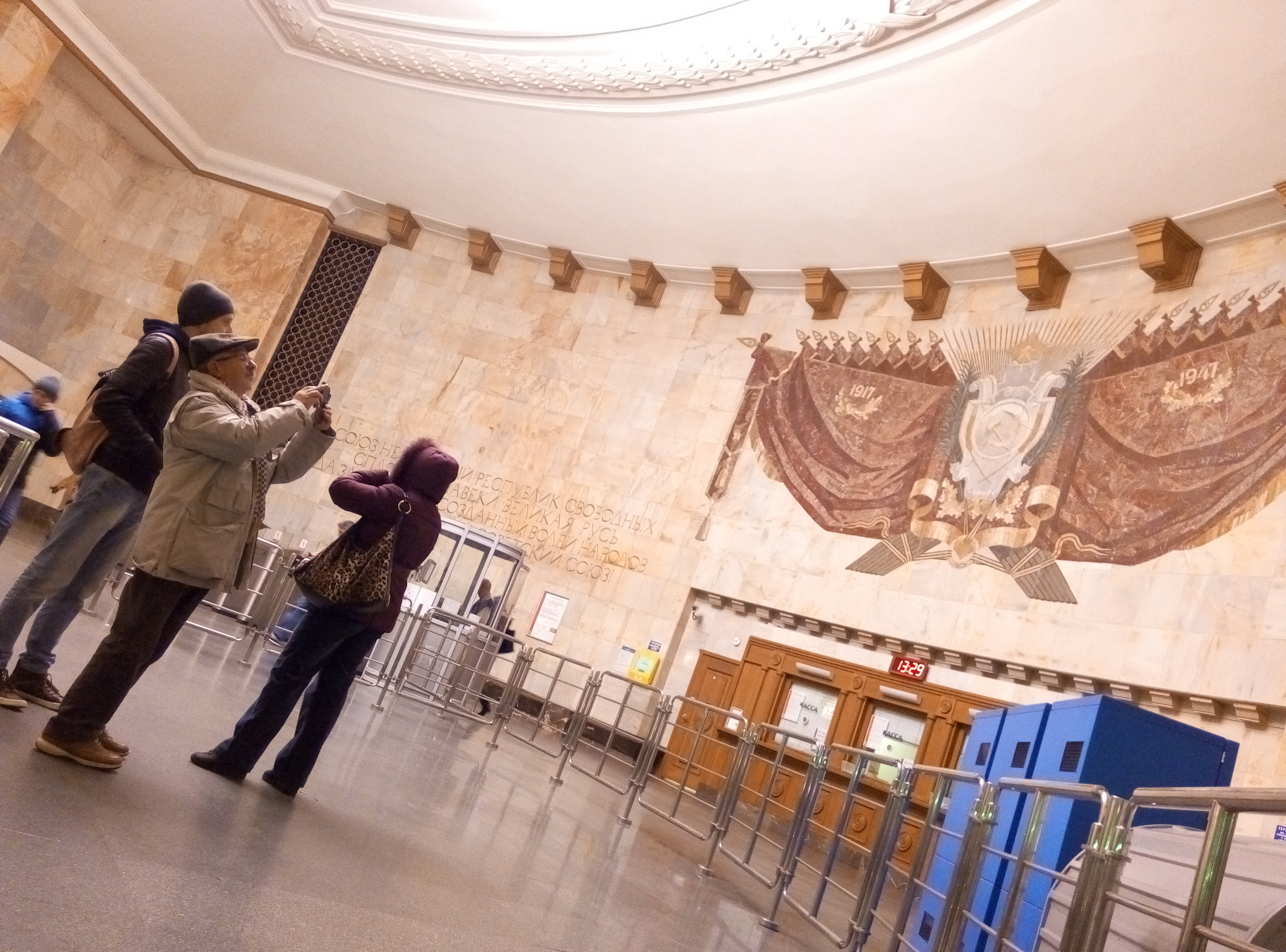 Così, quando papà, dopo aver percorso l’altisonante viale degli astronauti, ha attraversato le porte in stile greco-romano di VDNH, e ha notato l’uomo e la donna sul frontone, con in mano dei fasci di grano, si è eccitato.