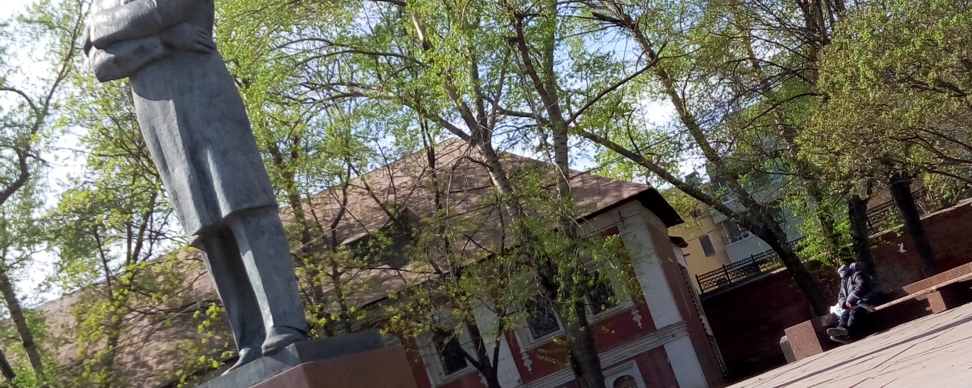 Nella piazza di fronte, un quadretto socioeconomico: il monumento a Engels, e nell’angolo un barbone.