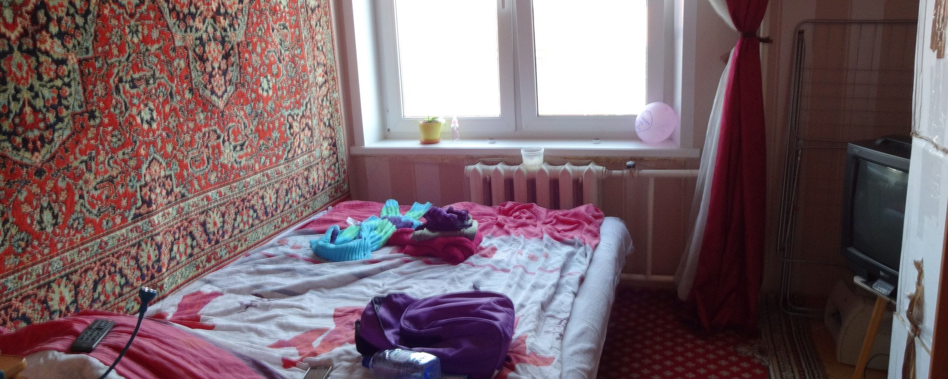 Nina viveva in un bilocale al quale forse era stata data l’ultima rinfrescata negli anni ’80. Il parquet era ovunque rivestito di tappeti, tranne in cucina, dove c’era il linoleum, tanto di moda negli appartamenti vecchi. Non capisco il senso di mettere il linoleum per terra alla cucina: si appiccica tutto e se cammini scalza ti si appiccicano anche i piedi, e non vale a niente spazzare, perché si appiccicano con lo sporco pure i pelucchi della scopa. La casa, però, era luminosa e nella mia camera-studio c’era pure un tappeto rosso a riscaldare e insonorizare una parete, che a me piaceva tantissimo, ma che a tutti i miei amici che hanno vissuto gli anni ’70 e ’80 in Russia, faceva schifo. Avevo la TV e la finestra affacciava sulla fabbrica del cioccolato Babaevsky, per cui non solo potevo vedere le signore con la cuffia blu che portavano i vassoi qua e là, ma con le condizioni del vento favorevoli potevo anche godermi qualche zaffata.