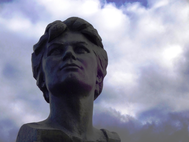 A metà strada troverete un’installazione di bronzo che è la gioia di tutti i bambini: mostra il sistema solare, al centro del quale, su un Sole con la faccia in stile rinascimentale, è posta una meridiana. Alla fine del viale, nel punto in cui compaiono le stelle vuote, i pezzi di storia ancora non scritti, sarete circondati dai busti degli astronauti. Di fronte a voi, ai piedi della scia di un missile che ha appena spiccato il volo, c’è Tsiolkovskij, pioniere dell’astronautica: non vi noterà nemmeno, è troppo occupato a fissare il cielo.