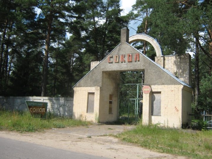 Gli edifici abbandonati e la tomba comune che compaiono nel video si trovano a Mednoe, un villaggio a 40 chilometri da Tver nel quale eravamo andati, l’anno scorso, a visitare la fattoria italiana Little Italy. Forse cento metri prima della fattoria, dall’altro lato della strada, c’è ancora l’insegna arrugginita: Ozdorovitel’nyj lager Sokol. Non so come si dice in italiano questa cosa; è un tipo di vacanza tipicamente sovietico: le persone venivano mandate tramite il posto di lavoro (o potevano andare a proprie spese) a riposare in luoghi in cui ci si prendeva cura della loro salute (ozdorovitel’nye, appunto) e contemporaneamente si provvedeva al loro intrattenimento culturale. A giudicare dagli oggetti trovati in questo lager, questo posto era particolarmente dedicato ai bambini: c’erano vecchie macchinine, poster, ma soprattutto una grande insegna su sfondo rosso dietro a una finestra distrutta: “Tieniti pronto a difendere gli interessi del partito comunista!”