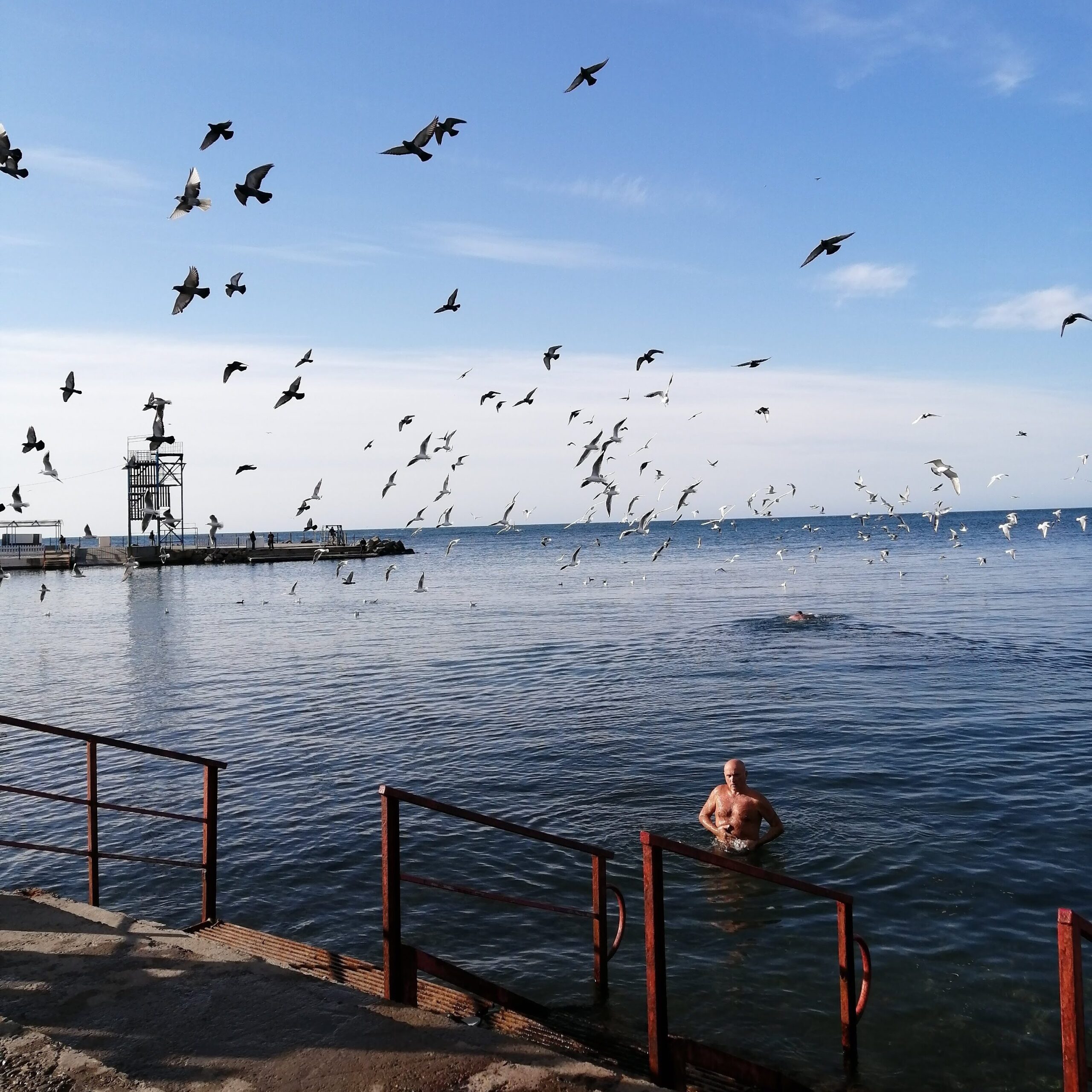 Io non sono e non ero abituata ad avere tempo libero, sono così poco abituata che quando ho tempo libero lo riempio subito, perché mi sento quasi in colpa a fissare il soffitto o le nuvole. E ad Anapa non c’era nulla da fare a parte passeggiare, guardare le vetrine, i morzhi, i trichechi, cioè gli uomini che si fanno il bagno in inverno, e fotografare gabbiani e cigni sulla spiaggia. Proprio i cigni sulla spiaggia non li avevo mai visti.